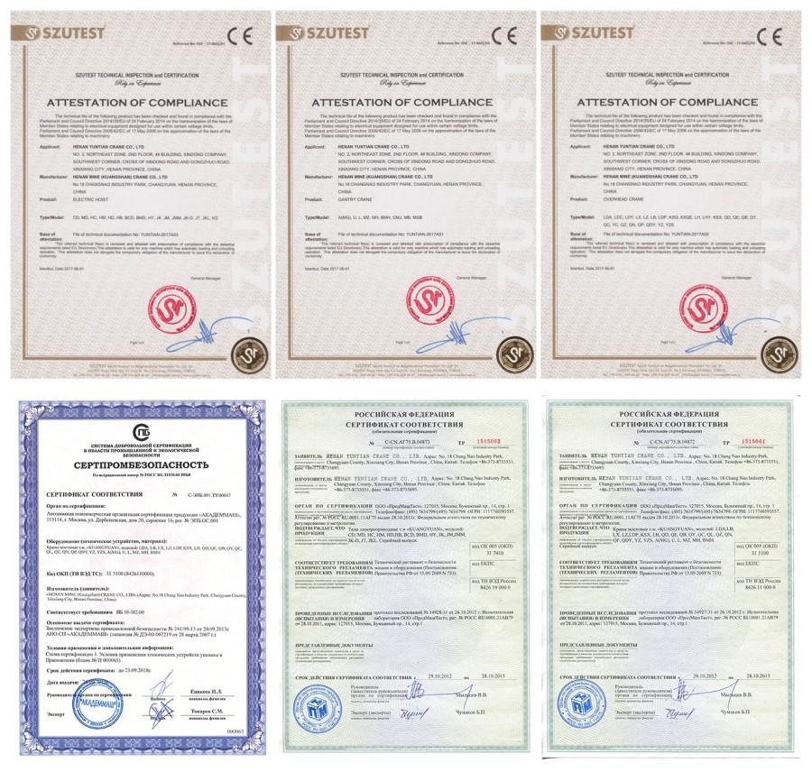 Нашият кран е преминал CE, ISO, GOST, SGS, TUV, BV, и така нататък.