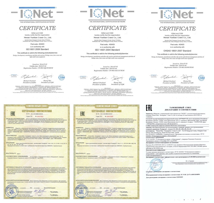 Хенан Yuntian Crane Ко ООД (покрива повече от 2/3 пазара на кран в Китай), съставен от много опитни кренови елити, включва инженерите и ние знаем как да контролираме качеството на крана стриктно за вас, да спестите допълнителни разходи за износ за вас, така че ние можем да ви предоставим най-високо качество кран кран с най-добрата цена. В допълнение, ние можем да ви предоставим до ключ проект включва инсталиране, въвеждане в експлоатация и така нататък, ако имате нужда.