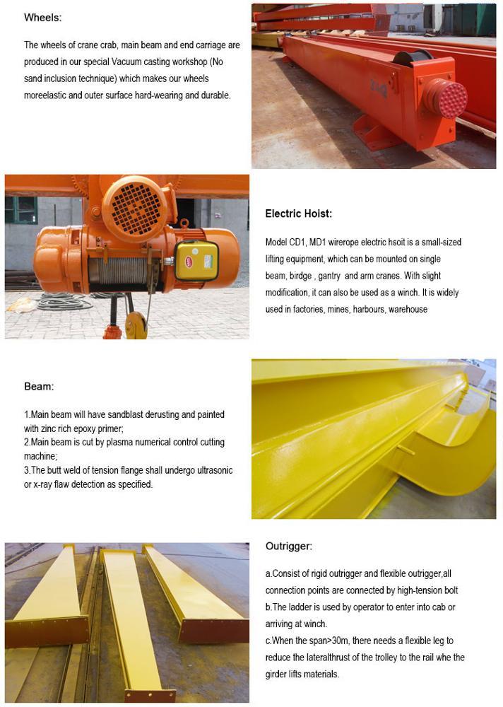 1.Gantry Crane се използва широко заедно с лебедка или количка за повдигащо устройство. 2. Това е средно тежък и тежък кран, който се движи в пистата. 3. Правилното му тегло за повдигане е от 5 до 75 тона, а разстоянието от 18 до 35 метра. 4. Правилната му работна температура е -20 - + 40 ° C. 5. Този тип кран е съставен от дълги светлини, крака от А-рамка, пътни механизми, колички, електрическо оборудване, силна повдигаща се лебедка. 6. Този продукт е обикновен кран, широко използван в работилница, складова, пристанищна и водноелектрическа централа и на друго място на открито, където има висока честота или по-дълги повдигания. 7. Той има два метода за контрол, а именно контрол на земята и контрол на кабината.